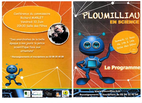 Nous vous avions annoncé dans notre dernière lettre l’organisation les 10 et 11 juin d’une nouvelle manifestation, « Ploumilliau en science », dont la cheville ouvrière était madame Annabelle Molle, professeur de sciences physiques au lycée Saint Joseph-Bossuet de Lannion et adjointe à la mairie de Ploumilliau. Elle avait sollicité ArmorScience qui y a participé avec enthousiasme.