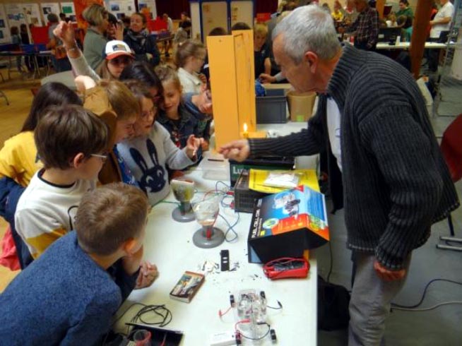 Nous avions lancé un appel auprès de nos adhérents pour participer à cette fête. Cet appel à bonnes volontés a été efficace car nous avons pu compter sur la mobilisation de « nouvelles têtes » que nous tenons à remercier ! Nous avons été nombreux à Ploumilliau les 9 juin (préparation, mise en place), 10 juin (public scolaire) et le samedi 11 juin où nous avons accueilli un public nombreux qui a pu profiter des ateliers de démonstration de « manips » scientifiques simples, bien présentées par nos animateurs. Une vingtaine de nos adhérents se sont relayés sur ces trois journées ! Au total, nous avons reçu la visite de l’ordre de 280 personnes, de toutes générations, sans compter les scolaires des écoles de Ploumilliau lors de la journée du 10 juin.