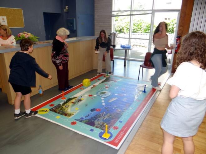 En plus des ateliers (production d’hydrogène par électrolyse, maquette d’une voiture électrique alimentée par une pile à combustible à l’hydrogène, optique de l’œil et corrections par des lunettes, couplage électromagnétique, électricité statique, transmission d’énergie entre balles de tailles différentes, course sur plan incliné de boites de conserve lestées afin d’illustrer l’influence du positionnement des masses, observations microscopiques du plancton …), nous avons présenté deux expositions : « Les animaux ont la parole » et « Les animaux marins en bandes dessinées » qui ont eu beaucoup de succès auprès des jeunes visiteurs, notamment quand elles ont pu être commentées. Le jeu de plateau géant « Mareco » a pu inciter les joueurs à se préoccuper des problèmes de protection des récifs coralliens.
